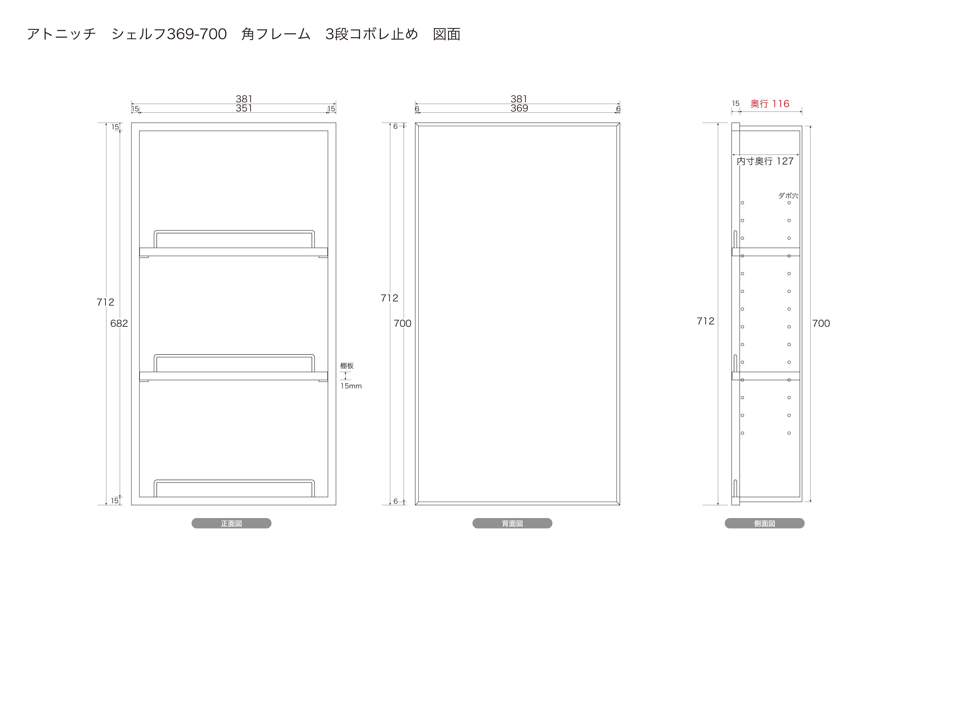 本体外寸法 :W 369mm × H 700mm × D 116mm(フレーム厚み15mm)