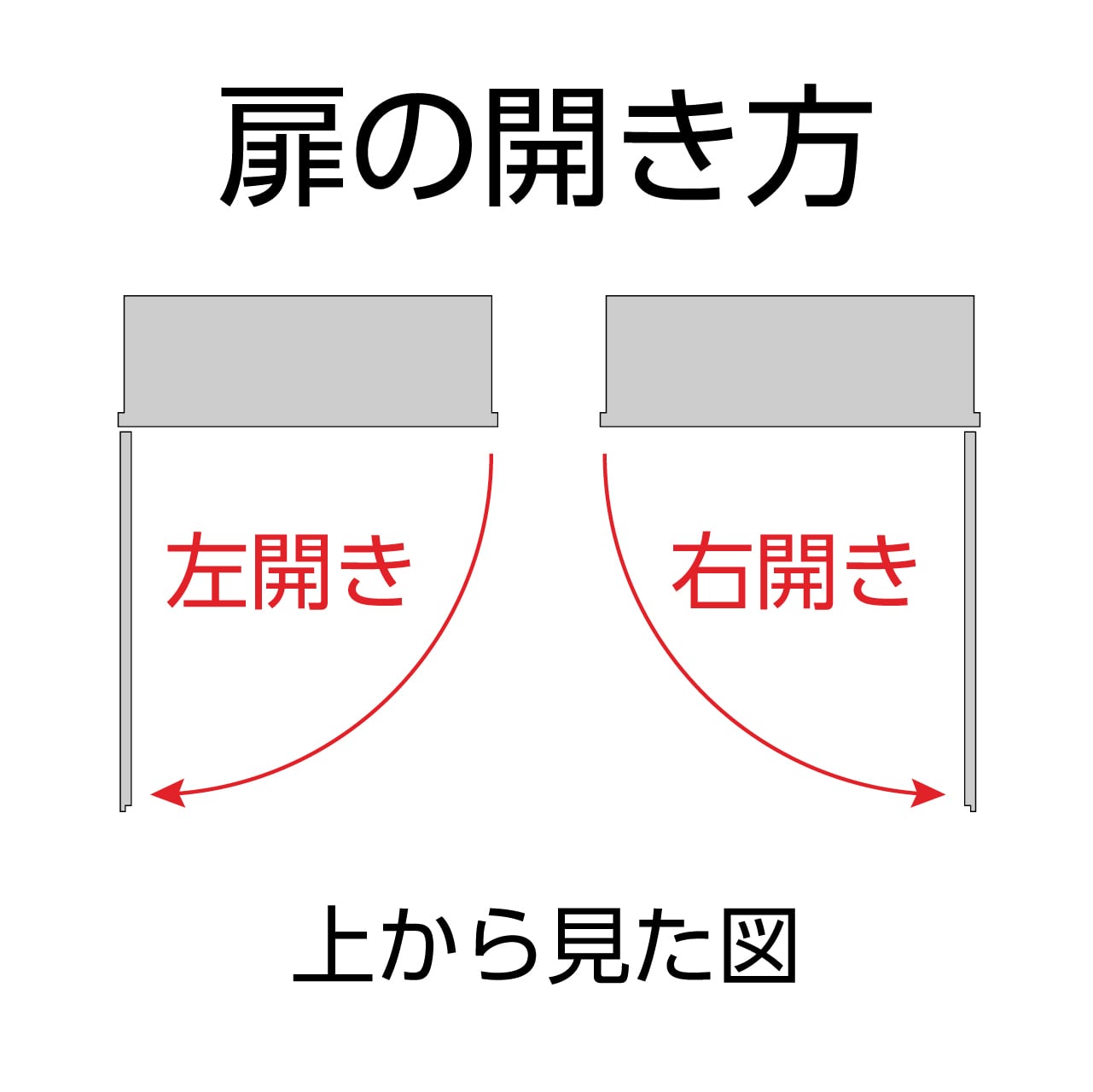 扉は静かに閉まるタイプです。左開きor右開きをお選びください。