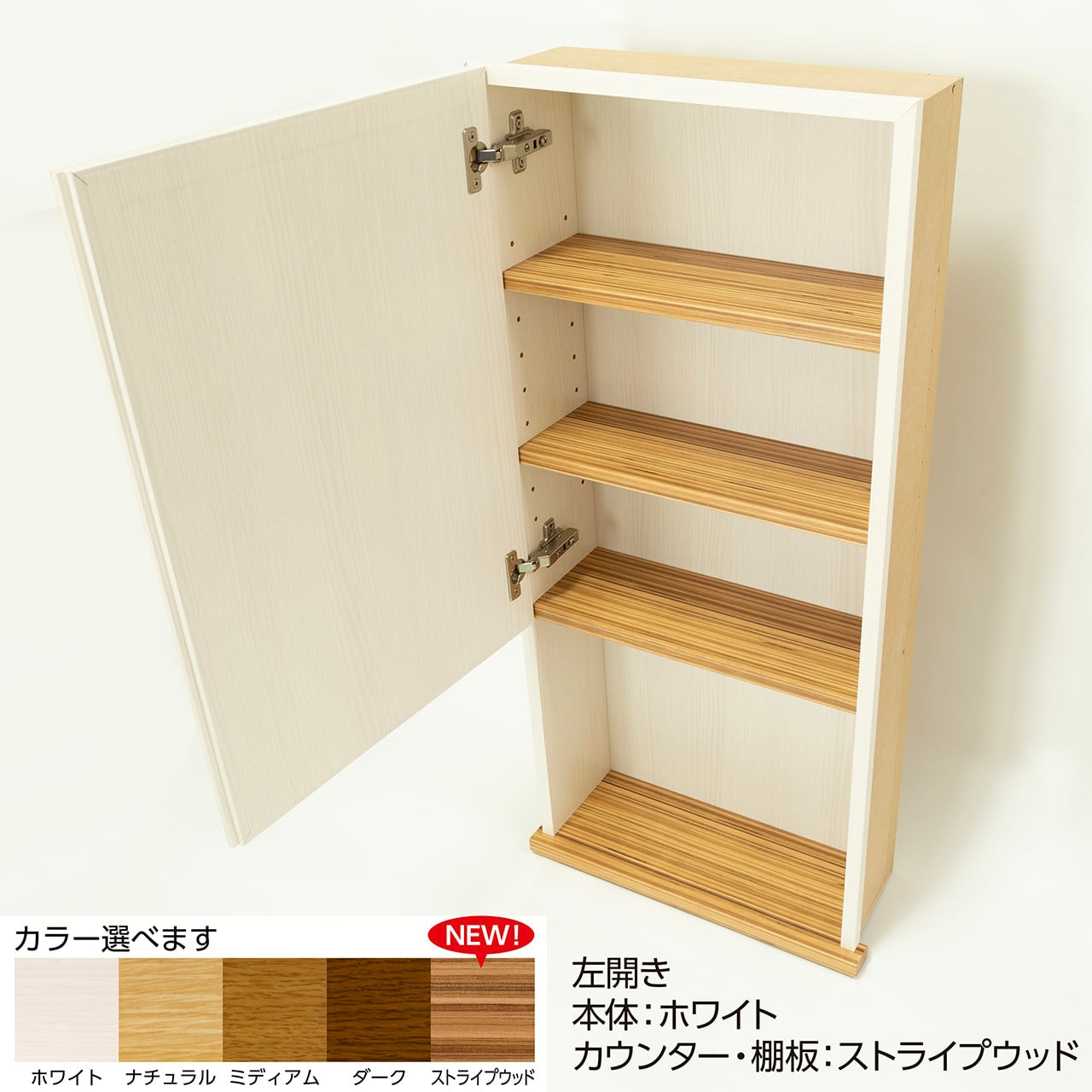 本体幅369mm縦844mmの上半扉付きシェルフ4段です。