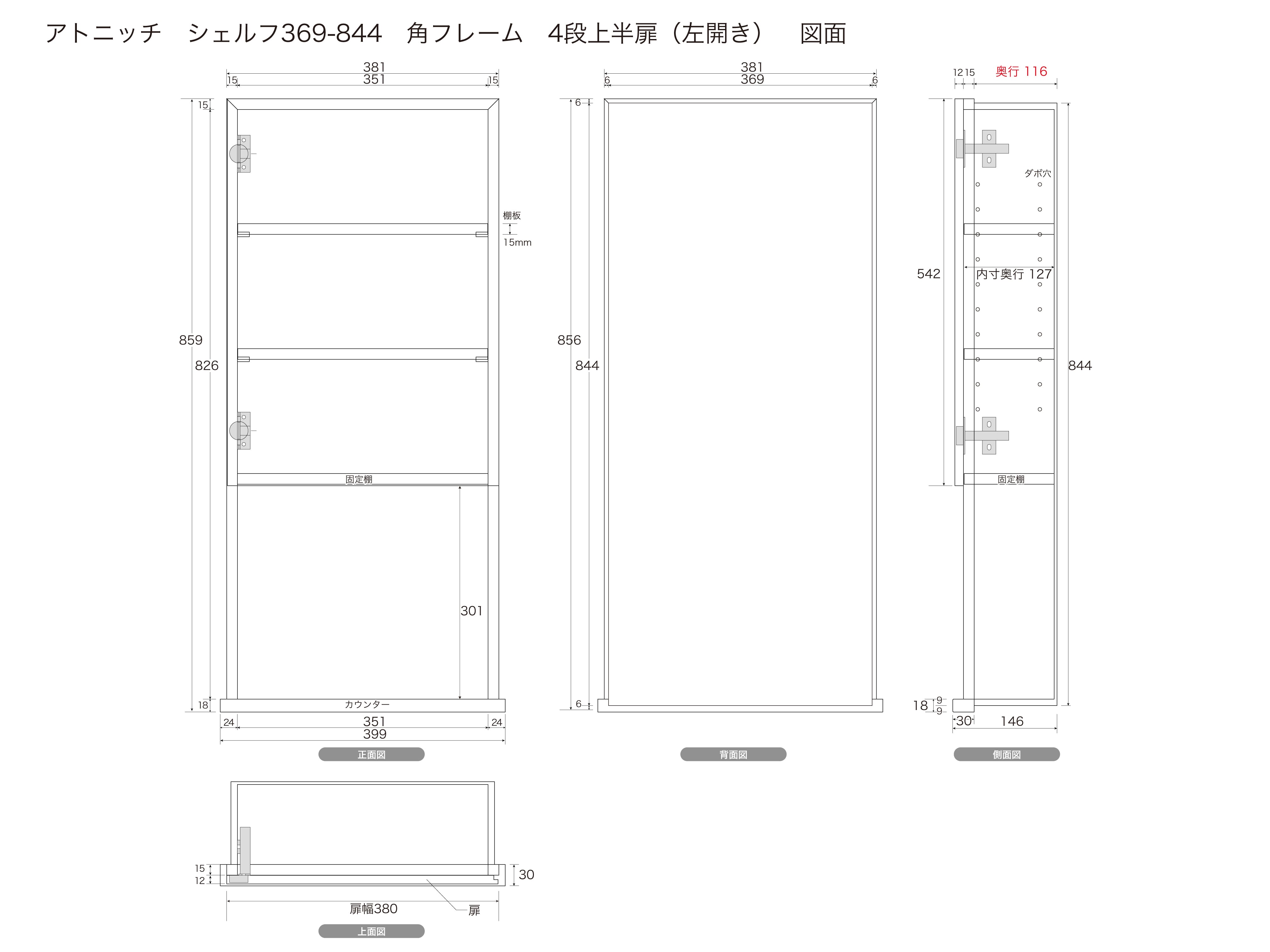 本体外寸法 :W 369mm × H 844mm × D 116mm(+フレーム厚15mm+扉厚12mm)