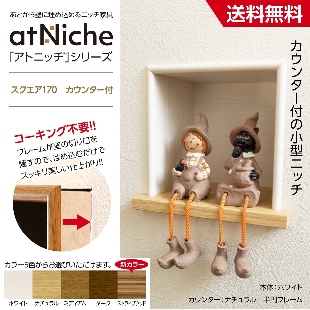 本体幅170mmの正方形のカウンター付き飾り棚ニッチです。